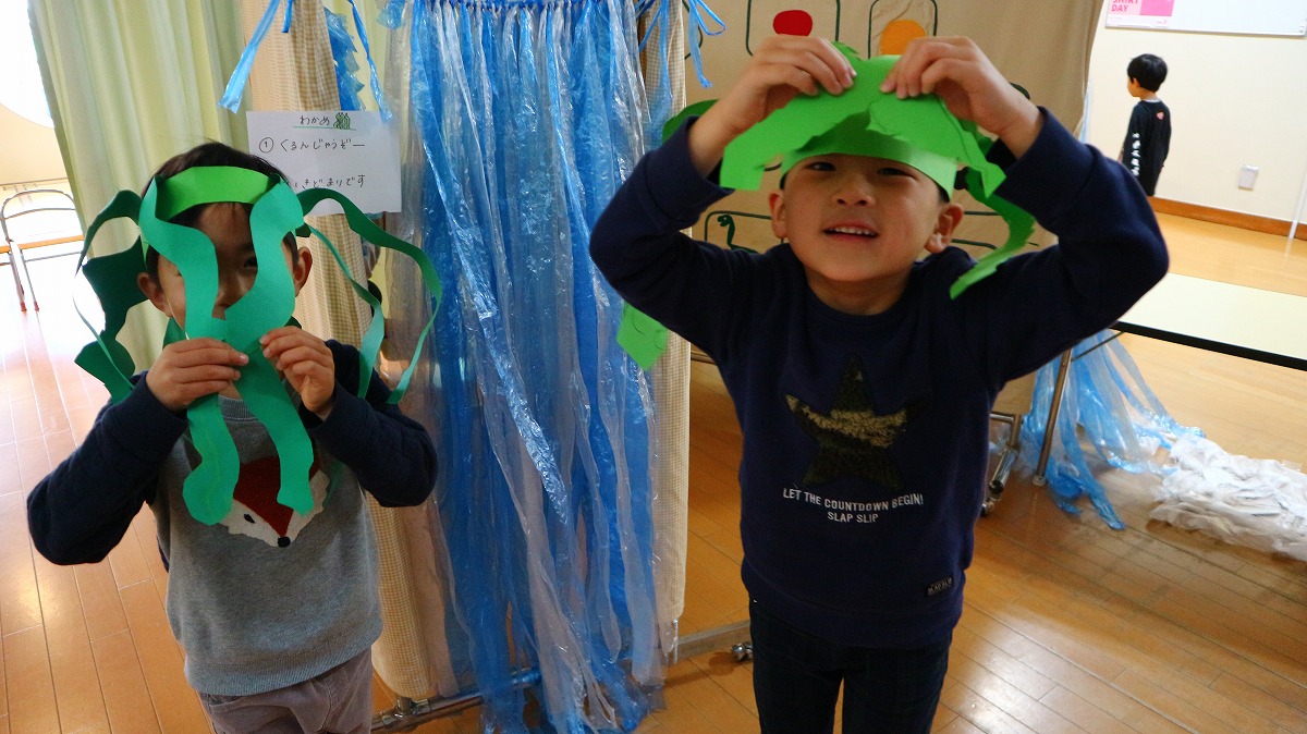 ゆり組のお店屋さんは運動会でのパラバルーンの題材であった”うみのそこたんけん”から
